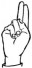 На ћирилици написано ЈОЖЕФ ДАНГУБИЋ састоји се из 13 слова [?]. Исписано ћириличном једноручном азбуком за глувонеме:
